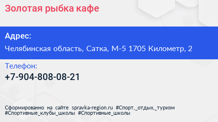 Золотая рыбка, кафе по адресу Челябинская область, Сатка, М-5 1705 Километр, 2 в дальнейшем Организация, размещена в следующих категориях: