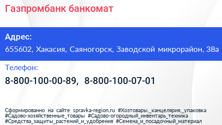 Газпромбанк, банкомат по адресу 655602, Хакасия, Саяногорск, Заводской микрорайон, 38а в дальнейшем Организация, размещена в следующих категориях: