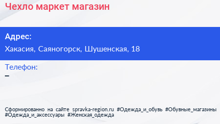 Чехло маркет, магазин по адресу Хакасия, Саяногорск, Шушенская, 18 в дальнейшем Организация, размещена в следующих категориях: