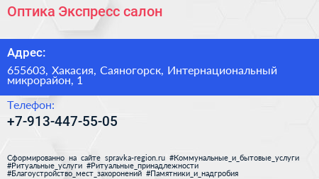 Оптика Экспресс, салон по адресу 655603, Хакасия, Саяногорск, Интернациональный микрорайон, 1 в дальнейшем Организация, размещена в следующих категориях: