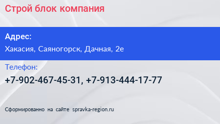 Строй-блок, компания по адресу Хакасия, Саяногорск, Дачная, 2е в дальнейшем Организация, размещена в следующих категориях: