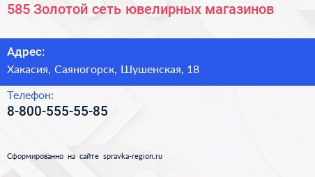 585*Золотой, сеть ювелирных магазинов по адресу Хакасия, Саяногорск, Шушенская, 18 в дальнейшем Организация, размещена в следующих категориях: