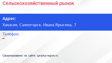 Сельскохозяйственный рынок по адресу Хакасия, Саяногорск, Ивана Ярыгина, 7 в дальнейшем Организация, размещена в следующих категориях: