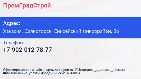 ПромГрадСтрой по адресу Хакасия, Саяногорск, Енисейский микрорайон, 36 в дальнейшем Организация, размещена в следующих категориях: