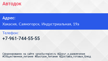 Автодок по адресу Хакасия, Саяногорск, Индустриальная, 19а в дальнейшем Организация, размещена в следующих категориях: