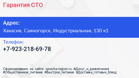 Гарантия, СТО по адресу Хакасия, Саяногорск, Индустриальная, 130 к1 в дальнейшем Организация, размещена в следующих категориях: