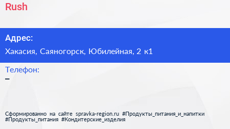 Rush по адресу Хакасия, Саяногорск, Юбилейная, 2 к1 в дальнейшем Организация, размещена в следующих категориях: