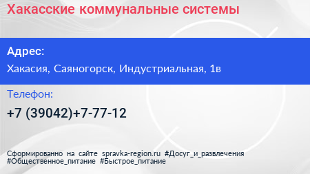 Хакасские коммунальные системы по адресу Хакасия, Саяногорск, Индустриальная, 1в в дальнейшем Организация, размещена в следующих категориях: