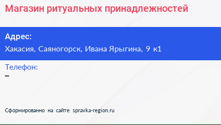 Магазин ритуальных принадлежностей по адресу Хакасия, Саяногорск, Ивана Ярыгина, 9 к1 в дальнейшем Организация, размещена в следующих категориях: