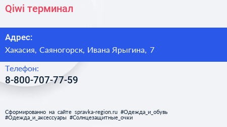 Qiwi, терминал по адресу Хакасия, Саяногорск, Ивана Ярыгина, 7 в дальнейшем Организация, размещена в следующих категориях: