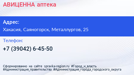 АВИЦЕННА, аптека по адресу Хакасия, Саяногорск, Металлургов, 25 в дальнейшем Организация, размещена в следующих категориях: