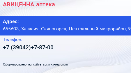 АВИЦЕННА, аптека по адресу 655603, Хакасия, Саяногорск, Центральный микрорайон, 9 в дальнейшем Организация, размещена в следующих категориях: