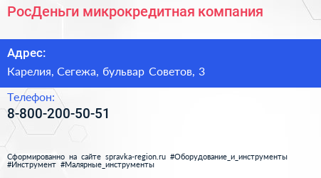 РосДеньги, микрокредитная компания по адресу Карелия, Сегежа, бульвар Советов, 3 в дальнейшем Организация, размещена в следующих категориях: