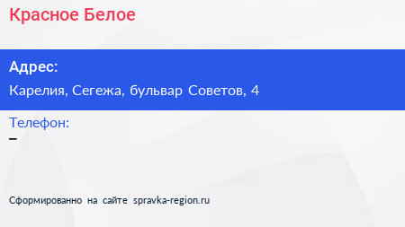 Красное & Белое по адресу Карелия, Сегежа, бульвар Советов, 4 в дальнейшем Организация, размещена в следующих категориях: