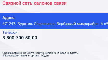 Связной, сеть салонов связи по адресу 671247, Бурятия, Селенгинск, Берёзовый микрорайон, 6 к9 в дальнейшем Организация, размещена в следующих категориях: