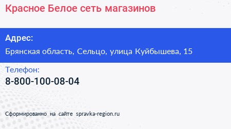 Красное & Белое, сеть магазинов по адресу Брянская область, Сельцо, улица Куйбышева, 15 в дальнейшем Организация, размещена в следующих категориях: