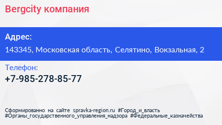 Bergcity, компания по адресу 143345, Московская область, Селятино, Вокзальная, 2 в дальнейшем Организация, размещена в следующих категориях: