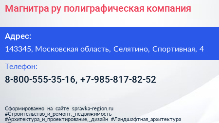 Магнитра.ру, полиграфическая компания по адресу 143345, Московская область, Селятино, Спортивная, 4 в дальнейшем Организация, размещена в следующих категориях: