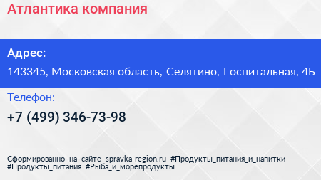 Атлантика, компания по адресу 143345, Московская область, Селятино, Госпитальная, 4Б в дальнейшем Организация, размещена в следующих категориях: