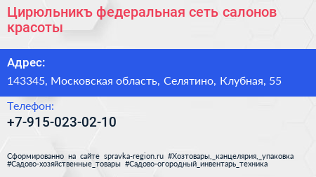 Цирюльникъ, федеральная сеть салонов красоты по адресу 143345, Московская область, Селятино, Клубная, 55 в дальнейшем Организация, размещена в следующих категориях: