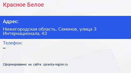 Красное & Белое по адресу Нижегородская область, Семенов, улица 3 Интернационала, 43 в дальнейшем Организация, размещена в следующих категориях: