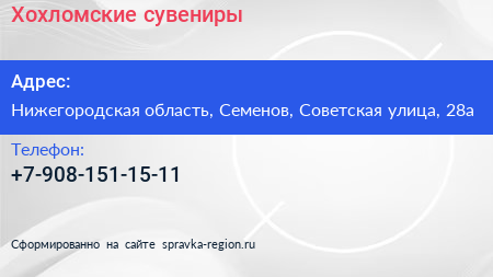 Хохломские сувениры по адресу Нижегородская область, Семенов, Советская улица, 28а в дальнейшем Организация, размещена в следующих категориях:
