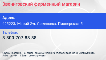 Звениговский, фирменный магазин по адресу 425223, Марий Эл, Семеновка, Пионерская, 5 в дальнейшем Организация, размещена в следующих категориях: