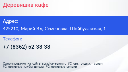 Деревяшка, кафе по адресу 425210, Марий Эл, Семеновка, Шойбулакская, 1 в дальнейшем Организация, размещена в следующих категориях: