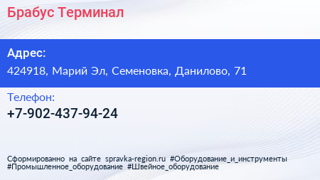 Брабус, Терминал по адресу 424918, Марий Эл, Семеновка, Данилово, 71 в дальнейшем Организация, размещена в следующих категориях: