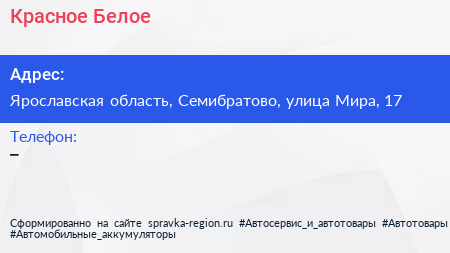 Красное & Белое по адресу Ярославская область, Семибратово, улица Мира, 17 в дальнейшем Организация, размещена в следующих категориях: