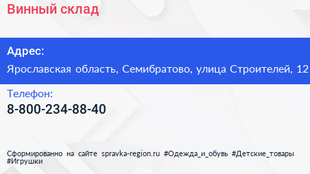 Винный склад по адресу Ярославская область, Семибратово, улица Строителей, 12 в дальнейшем Организация, размещена в следующих категориях: