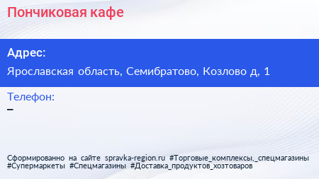 Пончиковая, кафе по адресу Ярославская область, Семибратово, Козлово д, 1 в дальнейшем Организация, размещена в следующих категориях: