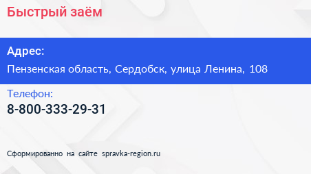 Быстрый заём по адресу Пензенская область, Сердобск, улица Ленина, 108 в дальнейшем Организация, размещена в следующих категориях: