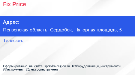 Fix Price по адресу Пензенская область, Сердобск, Нагорная площадь, 5 в дальнейшем Организация, размещена в следующих категориях: