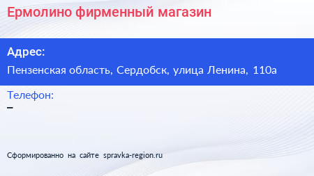 Ермолино, фирменный магазин по адресу Пензенская область, Сердобск, улица Ленина, 110а в дальнейшем Организация, размещена в следующих категориях: