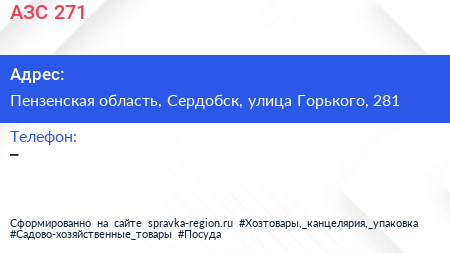 АЗС №271 по адресу Пензенская область, Сердобск, улица Горького, 281 в дальнейшем Организация, размещена в следующих категориях: