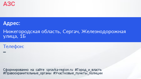 АЗС по адресу Нижегородская область, Сергач, Железнодорожная улица, 1Б в дальнейшем Организация, размещена в следующих категориях:
