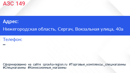 АЗС №149 по адресу Нижегородская область, Сергач, Вокзальная улица, 40а в дальнейшем Организация, размещена в следующих категориях: