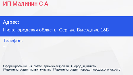 ИП Малинин С.А. по адресу Нижегородская область, Сергач, Выездная, 16Б в дальнейшем Организация, размещена в следующих категориях: