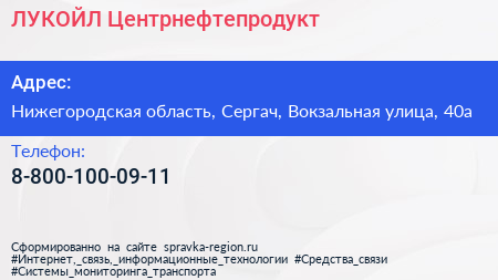 ЛУКОЙЛ-Центрнефтепродукт по адресу Нижегородская область, Сергач, Вокзальная улица, 40а в дальнейшем Организация, размещена в следующих категориях: