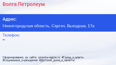 Волга-Петролеум по адресу Нижегородская область, Сергач, Выездная, 17а в дальнейшем Организация, размещена в следующих категориях: