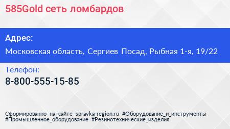 585Gold, сеть ломбардов по адресу Московская область, Сергиев Посад, Рыбная 1-я, 19/22 в дальнейшем Организация, размещена в следующих категориях: