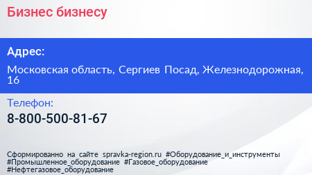 Бизнес бизнесу по адресу Московская область, Сергиев Посад, Железнодорожная, 16 в дальнейшем Организация, размещена в следующих категориях: