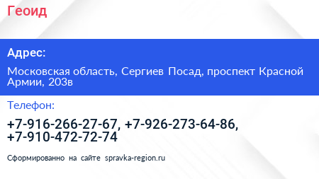 Геоид по адресу Московская область, Сергиев Посад, проспект Красной Армии, 203в в дальнейшем Организация, размещена в следующих категориях: