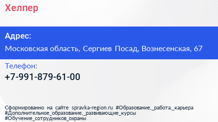 Хелпер по адресу Московская область, Сергиев Посад, Вознесенская, 67 в дальнейшем Организация, размещена в следующих категориях: