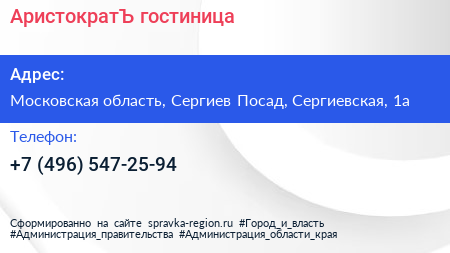 АристократЪ, гостиница по адресу Московская область, Сергиев Посад, Сергиевская, 1а в дальнейшем Организация, размещена в следующих категориях: