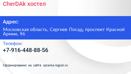CherDAk, хостел по адресу Московская область, Сергиев Посад, проспект Красной Армии, 96 в дальнейшем Организация, размещена в следующих категориях: