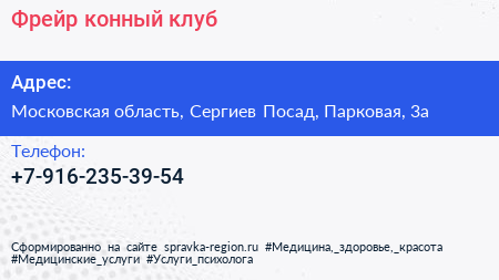 Фрейр, конный клуб по адресу Московская область, Сергиев Посад, Парковая, 3а в дальнейшем Организация, размещена в следующих категориях: