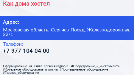 Как дома, хостел по адресу Московская область, Сергиев Посад, Железнодорожная, 22/1 в дальнейшем Организация, размещена в следующих категориях: