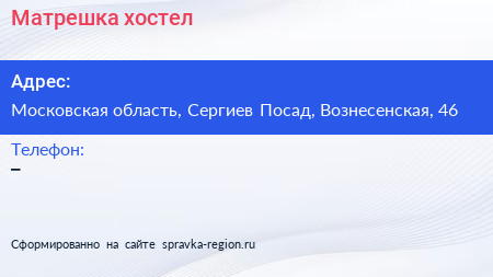 Матрешка, хостел по адресу Московская область, Сергиев Посад, Вознесенская, 46 в дальнейшем Организация, размещена в следующих категориях: